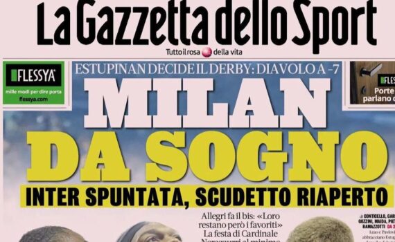 Nonostante l’ennesima sconfitta nel derby, l’Inter ha ancora sette punti di vantaggio e le mani sullo campionato. Fonte