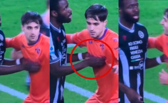 L'attaccante dell'Udinese cerca di liberarsi della marcatura di Ranieri, ma lo fa in modo poco convenzionale: ecco cosa è successo Fonte