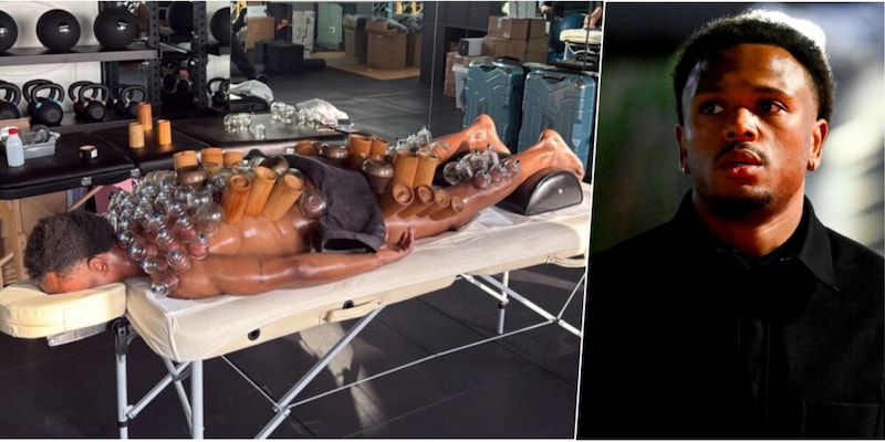 La foto del giocatore belga, steso su un lettino e ricoperto da numerose ventose, è diventata virale sul web Fonte