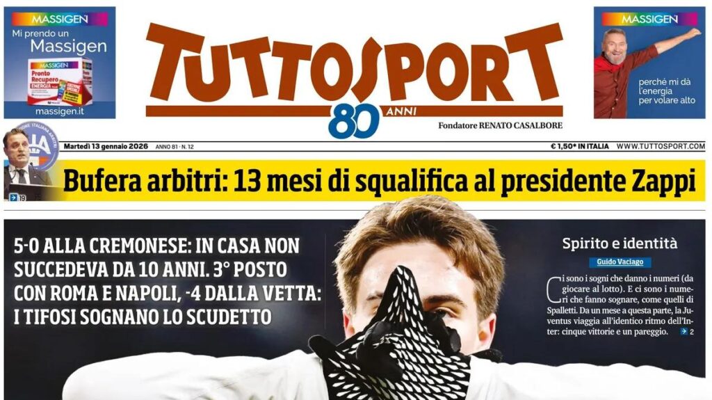Solo mezza pagina dedicata al mercato di Serie C e ai posticipi della seconda giornata di ritorno sull'edizione odierna di Tuttosport. Il quotidiano torinese apre appunto con le ultime trattative e titola: "Colpo Sambenedettese.
